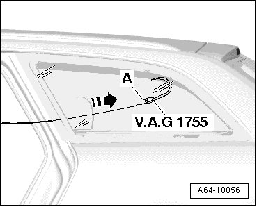 - Pull cutting cord end - A - inward (use pliers and protective gloves) to opposite window side with guide needle from (V.A.G 1755) window removing kit.