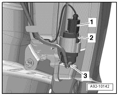 - Release the securing clip - 2 - in the direction of - arrow - and remove the washer fluid line - 1 - from the windshield washer system washer fluid pump.