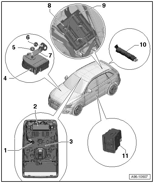 • The interior monitoring transceiver module 1 (G303) and inclination sensor/anti-theft system control module (J529) were combined in one component, the anti-theft alarm system sensor.