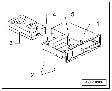 - Press the tabs - 4 - and - 5 - down and up and remove the control module - 5 - back from the frame - 1 -.