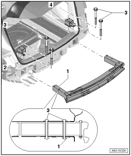 - Remove the bolts - 3 - and remove the impact member and mounts.