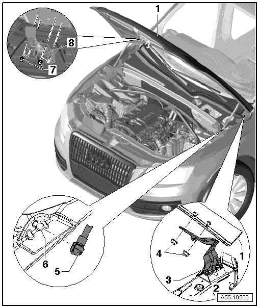 • Removing and installing => [ Gas-Filled Strut ] Gas-Filled Strut.