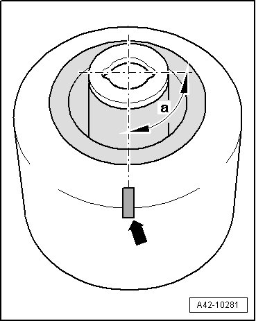 - Install the rubber bonded bushing with the marking - arrow - into the subframe so that the marking points exactly in the driving direction.