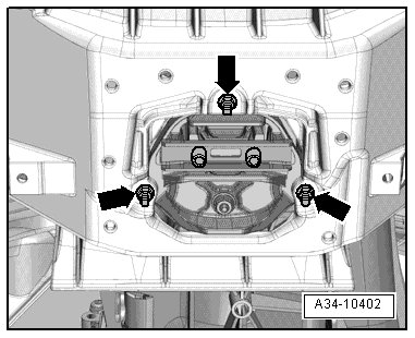 - Remove the nuts - arrow - and the tunnel crossmember.