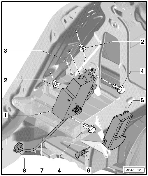 - Remove the bolts - 3 - and remove the trailer hitch to the rear.