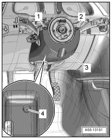 • If bolts - 1 - and - 2 - are not accessible, steering wheel must be removed for further work.