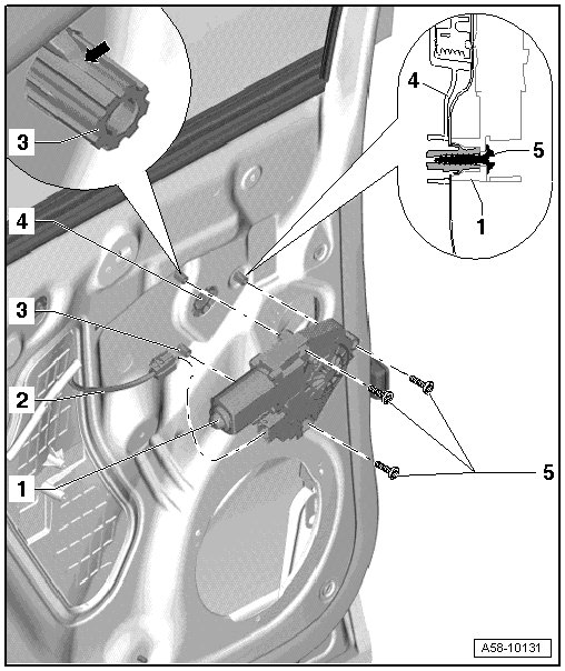 A - Left Rear Window Regulator Motor -V26- => [ Rear Window Regulator Motor ] See Image Below.
