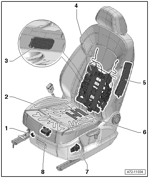 • Versions with driver side seat heating: left front seat ventilation control module (J800).
