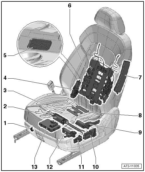 • The overview is based on a power standard front seat. The electrical