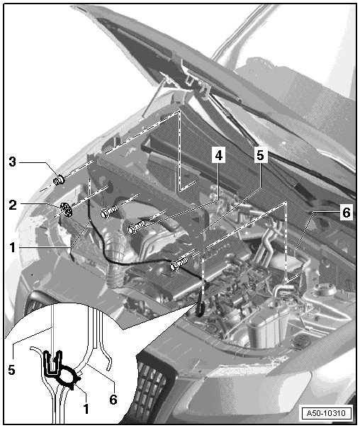 • Remove the bolts - 1 - and nut - 4 -.