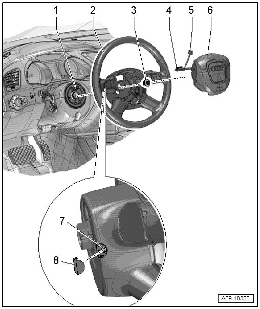 With the Airbag Spiral Spring/Return Spring With Slip Ring -F138- and Steering Angle Sensor -G85-