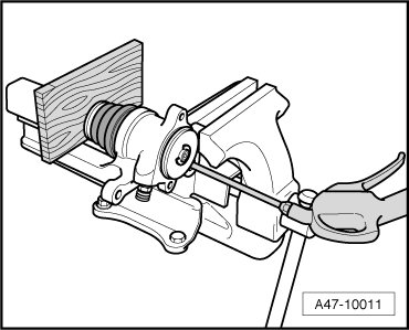 • Place a wooden board into the recess of the caliper housing so it is not damaged.