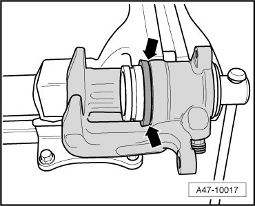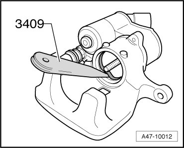 - After brake piston has been guided onto pressure nut, press it as far as stop into brake caliper.