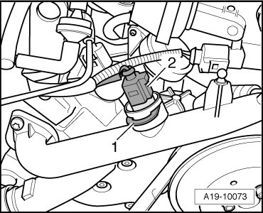 - Remove retaining clip - 1 - and Engine Coolant Temperature (ECT) Sensor.