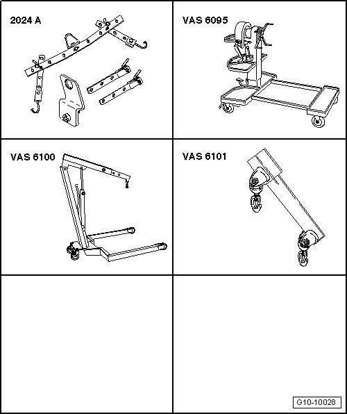 • Engine and Transmission Holder (VAS 6095) with Bracket for V6 FSI Engine, Audi A6 (VAS 6095/1-5)