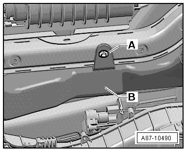 - Insert both lower air intake housing straps - A - into the mounting points on the A/C - B -.