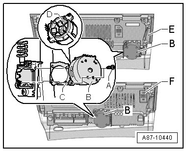 - Remove the interior temperature sensor fan - B - out of the Climatronic control module.