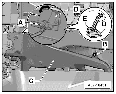 - Turn the sensor - D - 90° and remove it from the right footwell vent - C -.