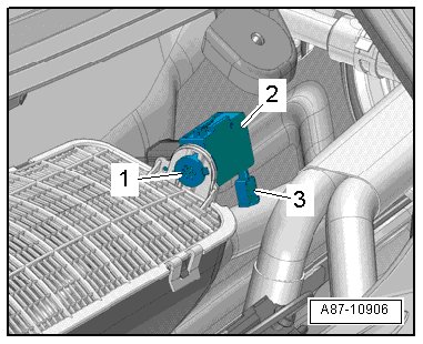 • If the vehicle has the "Basis" A/C system, then only the humidity sensor in fresh air intake duct - 3 - is there. The air quality sensor - 1 - is not installed in the housing - 2 - (housing color "black").