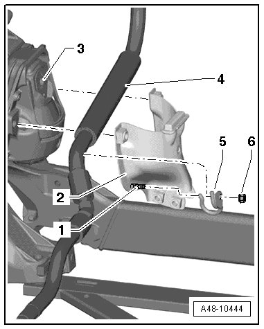- Secure the return line - 1 - with the line bracket - 4 - to the left front of the subframe - 3 -.