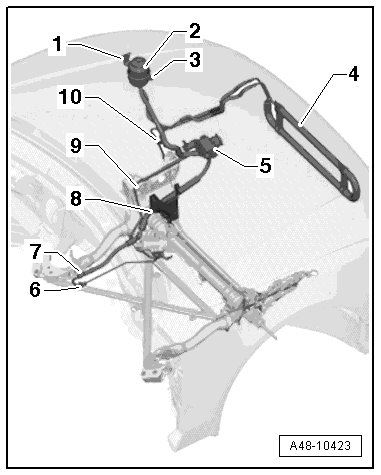 - Install the pressure line on the crossbrace using the nut - 3 - and rubber bushing - 4 -.