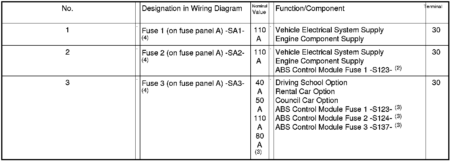 3 - Fuse 3 (on fuse panel A) -SA3- , => [ Fuses on ]
