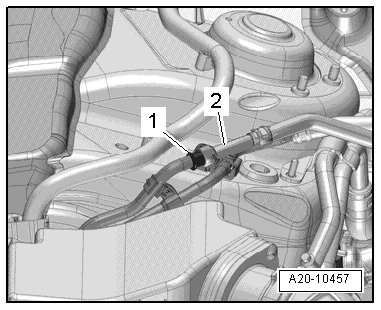 - Disconnect the fuel line - 2 - by pulling release ring - 1 -.