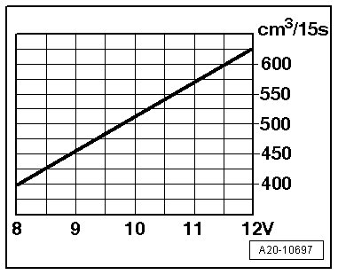 - Compare quantity of fuel delivered with minimum delivery rate in diagram (cm3/15s).