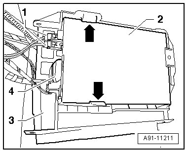 - Install the bracket with the radio. Refer to => [ Radio, MMI ] Radio, MMI.