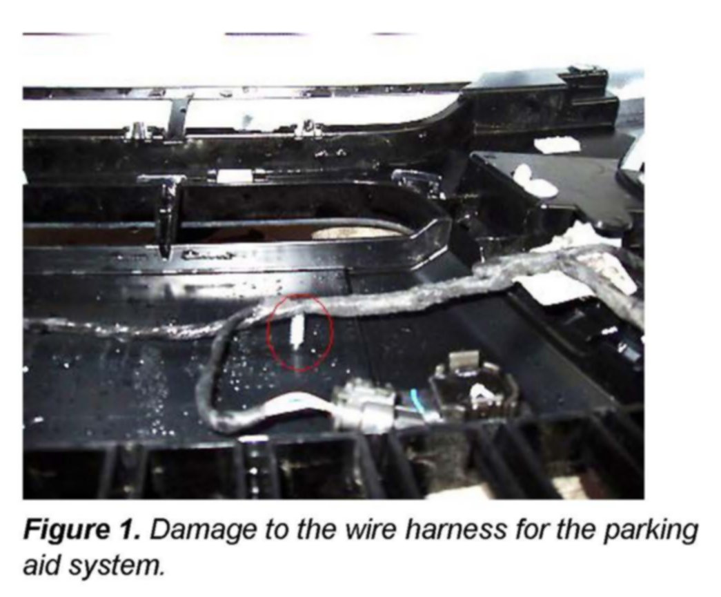 The wire harness for the parking aid system may have been damaged when installing the front license plate frame.