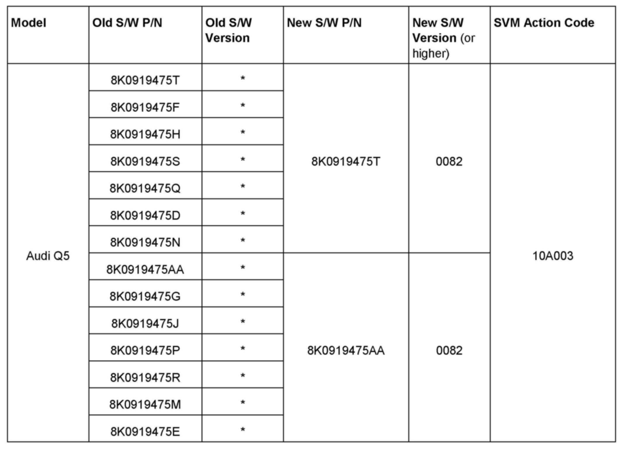 2. Update the Park Aid Control Module (J446) using the SVM action code as listed in the table above if necessary.