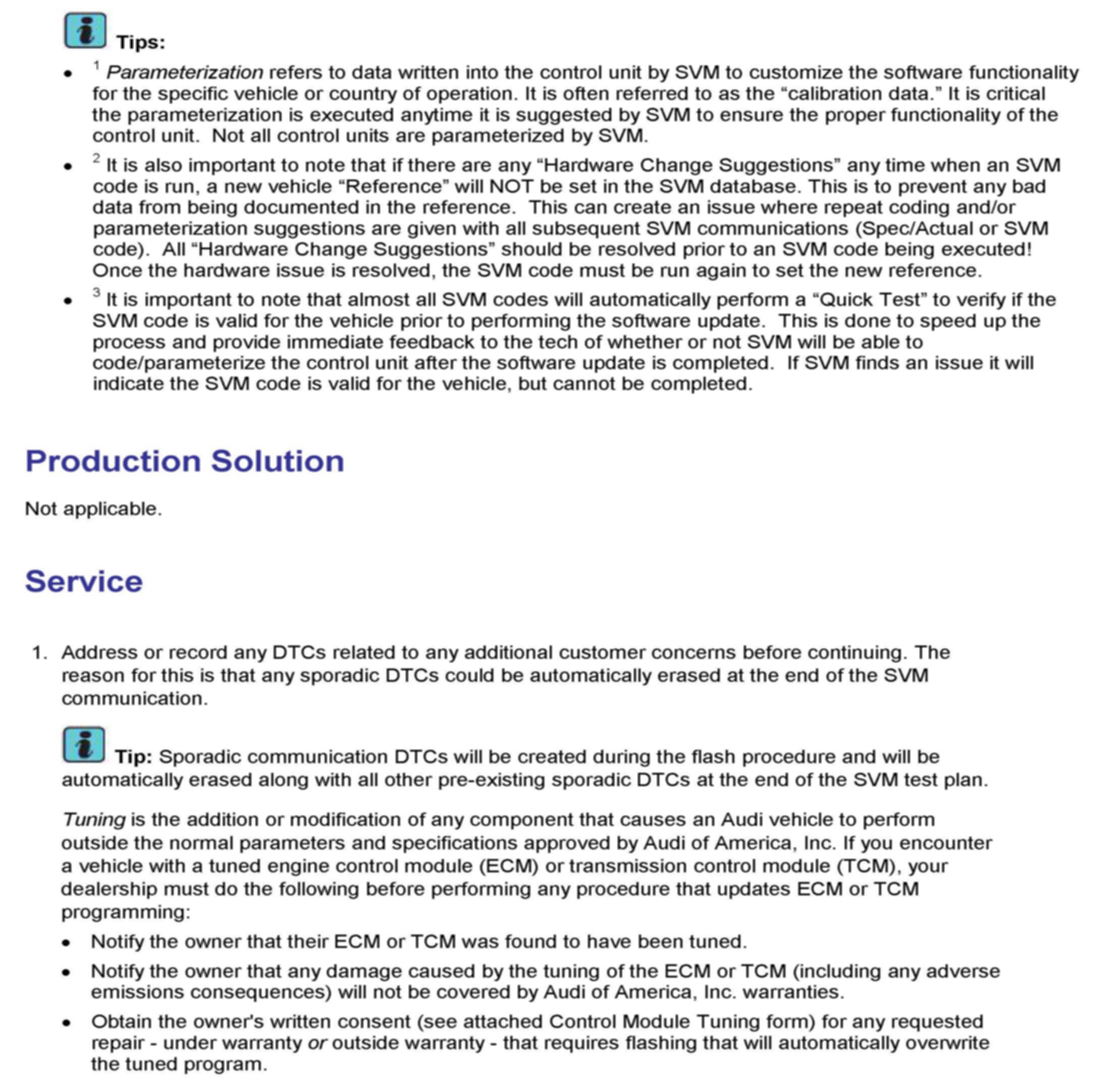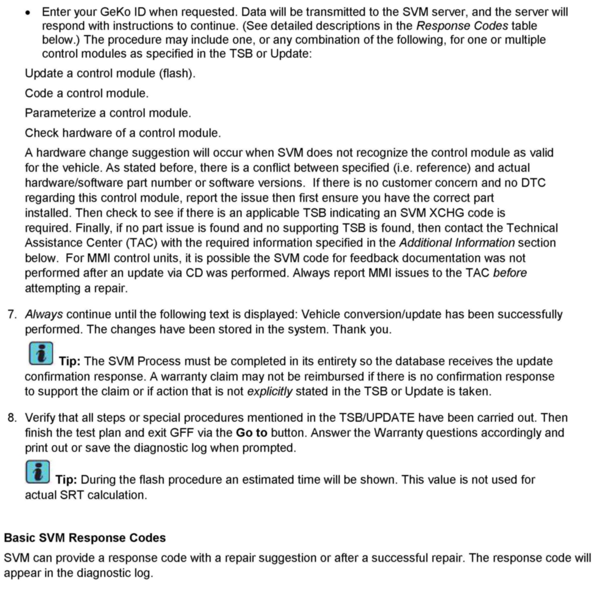 1. Follow all instructions in the attached TSB 2011732 00 Software Version Management (SVM), operating instructions.