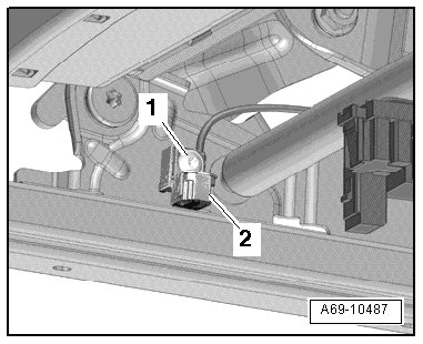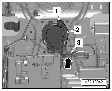 - Open the seat occupied recognition pressure hose guide - 1 - and free up the pressure hose - 2 -.