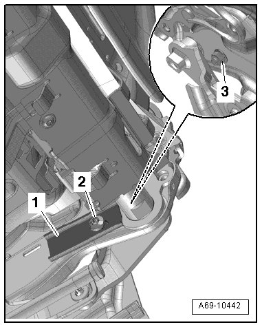 - Remove the bolt - 2 - and counterhold the nut - 3 -.