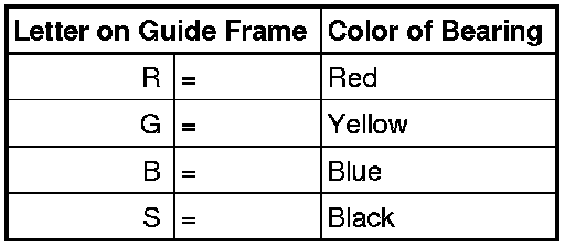 Bearing shells with the correct thickness are allocated to the guide frame in the factory. Colored dots on the sides of the bearing shells serve for identifying bearing shell thickness.