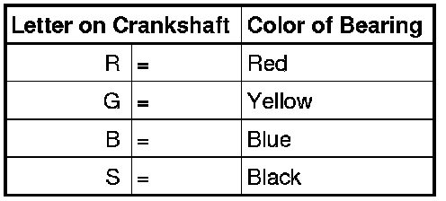 Bearing shells with the correct thickness are allocated to the cylinder block in the factory. Colored dots on sides of bearing shells serve for identifying bearing shell thickness.