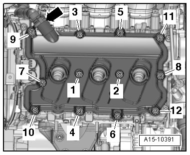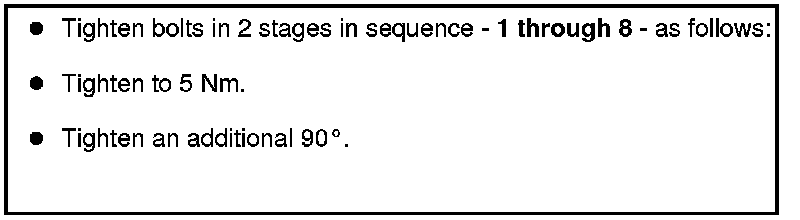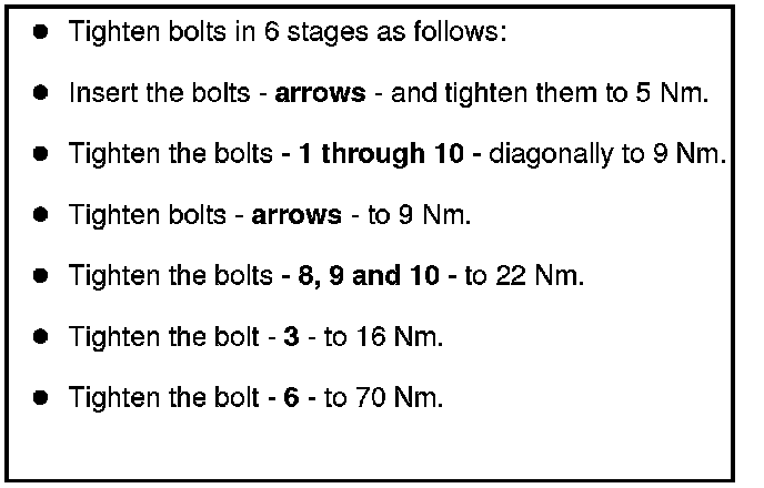- Tighten the bolts to 9 Nm in the following sequence: - 1 to 12 -.