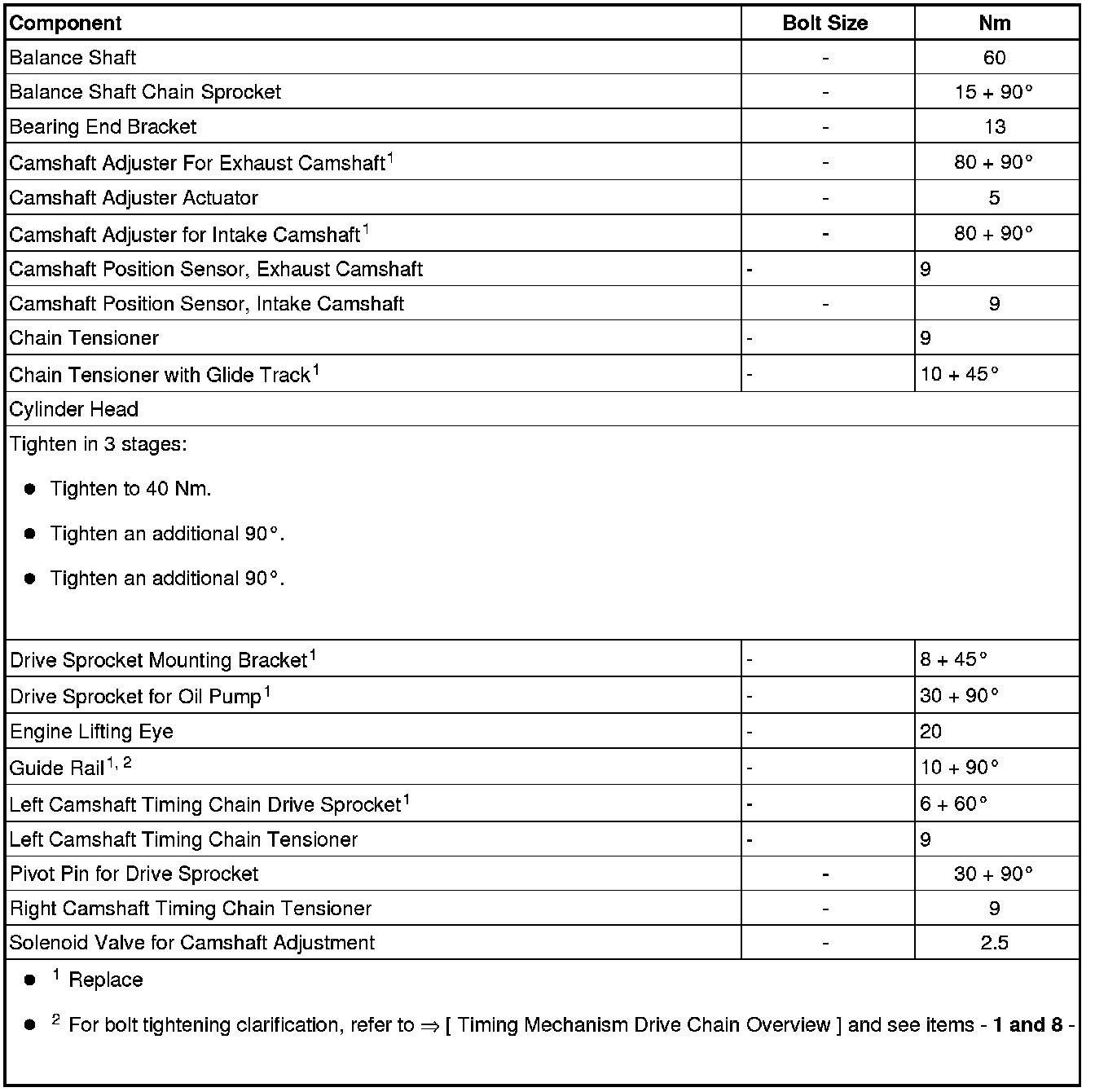 Cylinder Head, Valvetrain - Fastener Tightening Specifications
