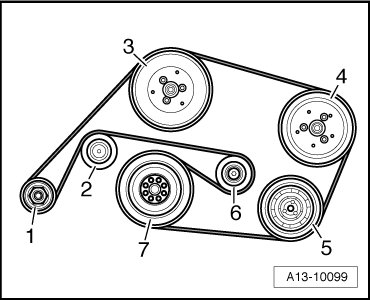 • Before removing ribbed belt, marking running direction with chalk or a felt-tip pen for reinstallation.