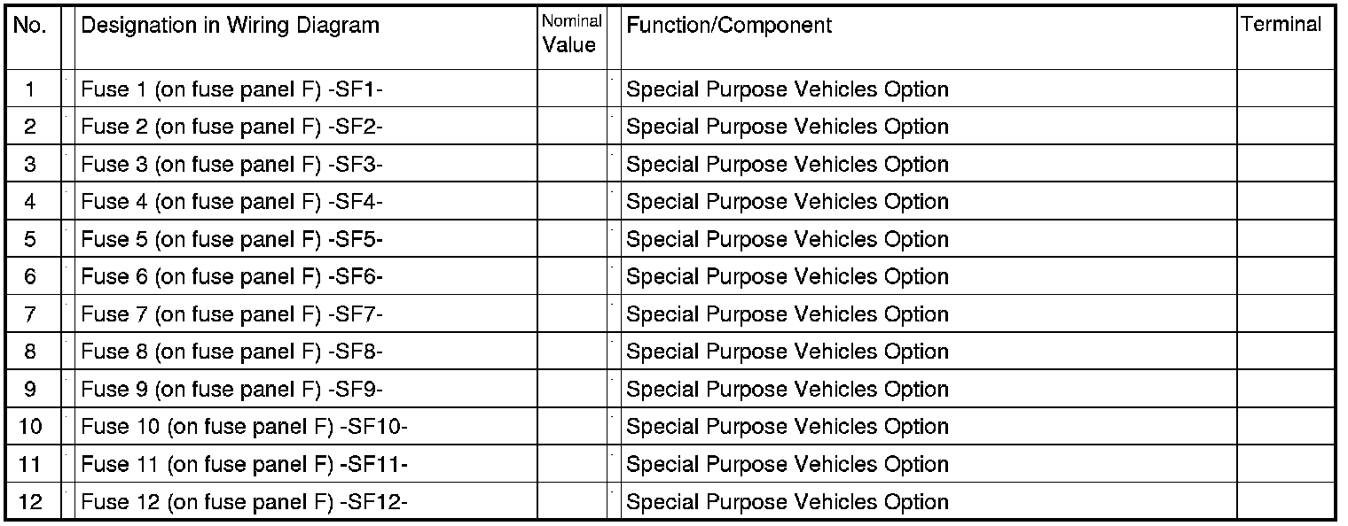 Single Fuse on Fuse Panel F -SF-