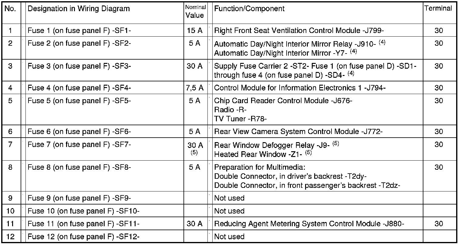Relay /Fuse Panel F -SF- from May 2012