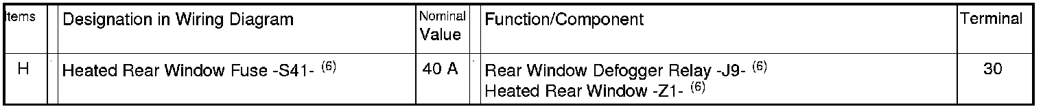H - Heated Rear Window Fuse -S41- => [ Single Fuse on ]