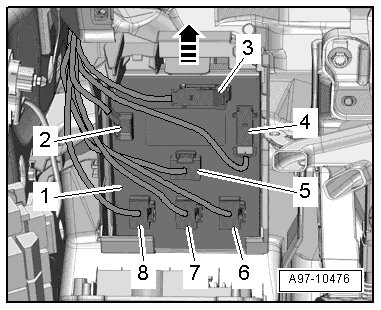 - Disconnect the electrical connectors - 2, 5, 6, 7, 8 -.