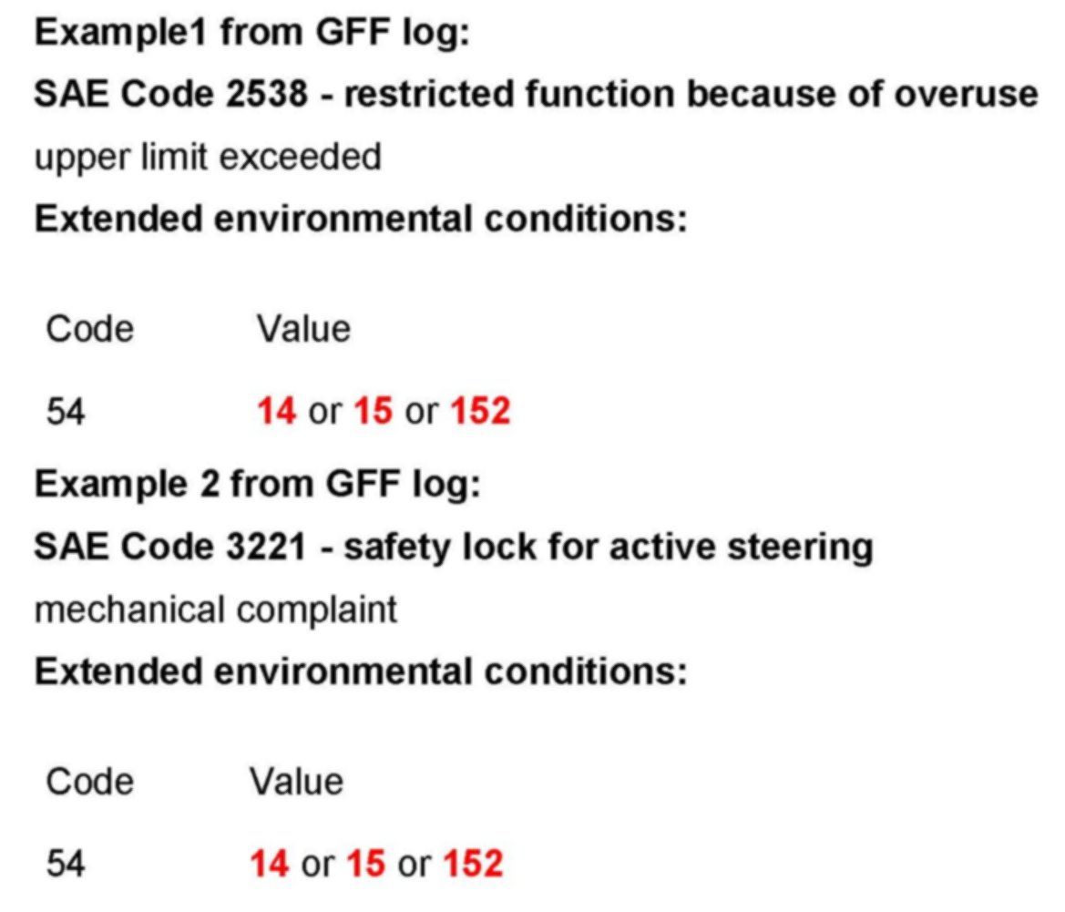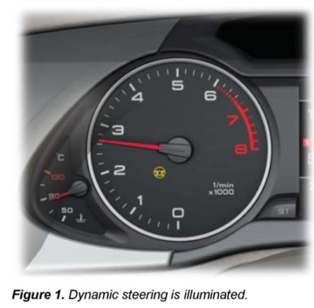 The symbol for dynamic steering is illuminated in the instrument cluster. A DTC for overload, overuse, or steering lock, is stored in the active steering control module (J792), address word 1B. The environmental conditions displayed in the GFF log match the Technical Background below.