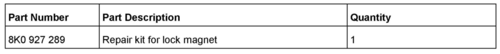 1. Repair the steering column by installing the repair kit for lock magnet, part 8K0 927 289.