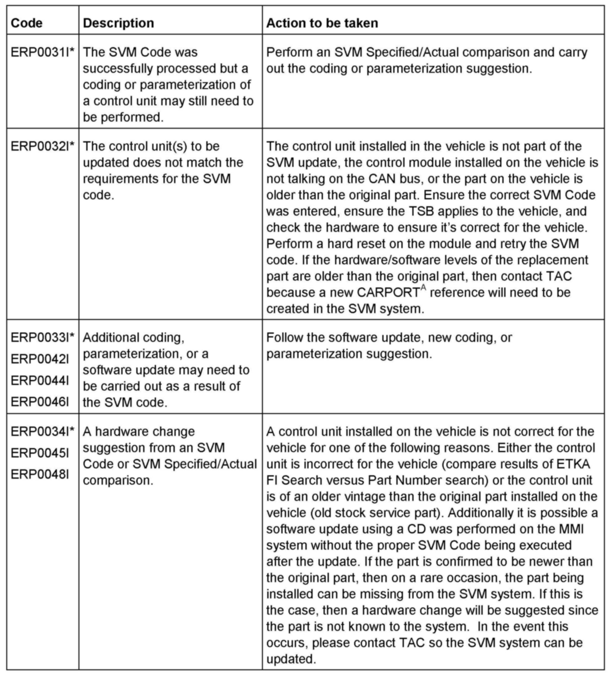 2. Update the active steering control module (J792) using the SVM action code as listed in the table above if necessary.