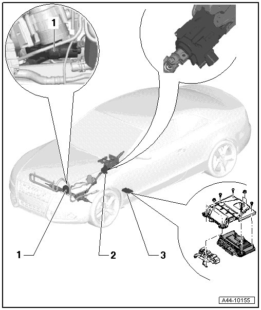The following illustration shows the component locations - 2 - and - 3 - on a LHD vehicle.