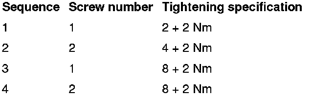 - Install the new locking magnet as shown in the following table and secure it with both new screws - 1 and 2 - (use the supplied tool).