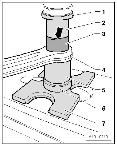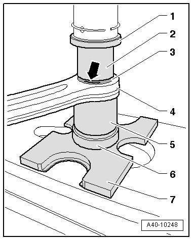 - Check the press-in depth for the mount - 1 - on the control arm - 2 -.