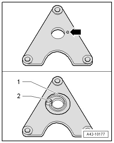 - Insert the new spring plate - 1 - with the hole - 3 - with the counterbore from the (VAS 6274/10).